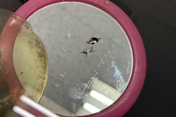 リペア機で空気を抜き、その後加圧することでレジン液を傷の中へ圧入しています。
