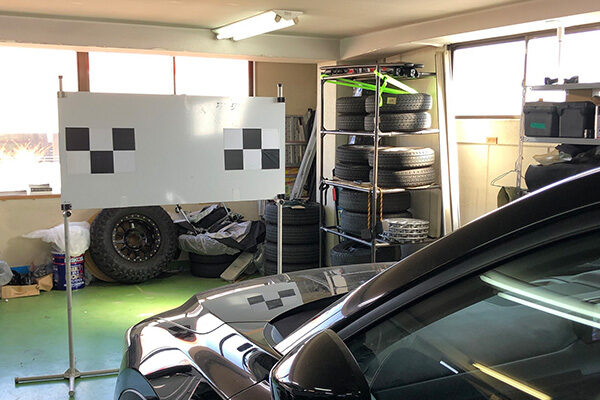 新しいガラスを取り付け、衝突軽減システム用カメラの調整(エーミング)を行い完成です