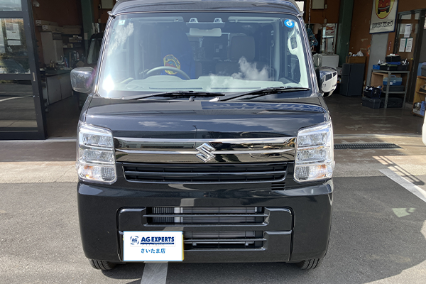 AGエキスパートさいたま店にてエブリィ(スズキ)のフロントガラスリペアを実施しました。フロントガラスのリペアや交換をご検討中の方はぜひ参考にご覧ください。