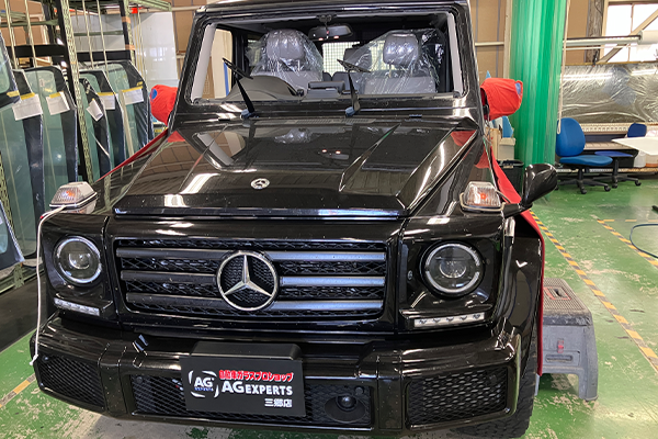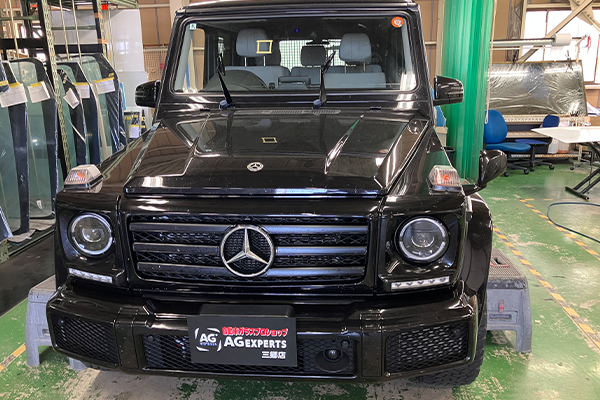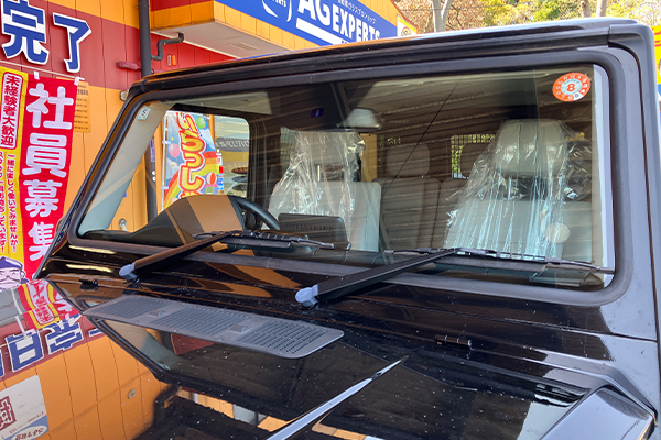 AGエキスパート三郷店にてGクラス(メルセデスベンツ)のフロントガラス交換を実施しました。飛び石キズのリペアやガラス交換をご検討中の方はぜひ参考にご覧ください。