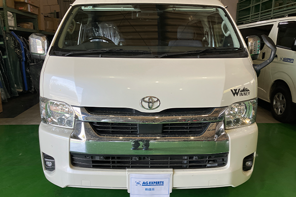 AGエキスパート新座店にてハイエース(トヨタ)のフロントガラスリペアを実施しました。フロントガラスリペアをご検討中の方はぜひ参考にご覧ください。