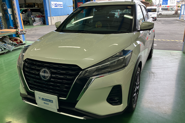 AGエキスパート新座店にてキックス(日産)のフロントガラスリペアを実施しました。フロントガラスリペアをご検討中の方はぜひ参考にご覧ください。
