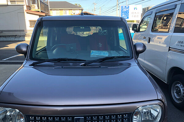 AGエキスパート新座店にてラパン(スズキ)のフロントガラス交換を実施しました。ガラス交換をご検討中の方はぜひ参考にご覧ください。