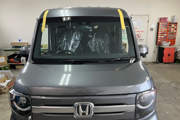 N-VAN(ホンダ)のフロントガラス交換を実施しました。施工はAGエキスパート久喜店です。自動車ガラスの交換やリペアをご検討中の方はぜひ参考にご覧ください。