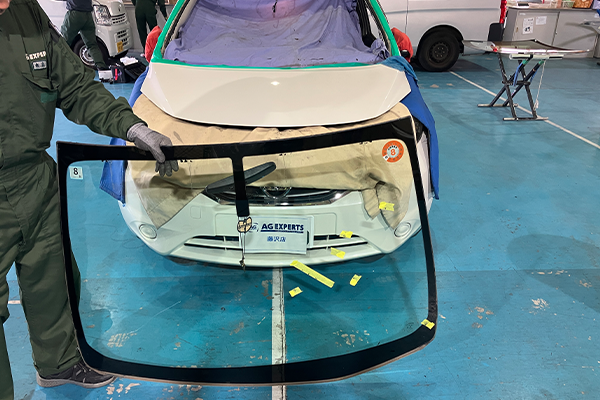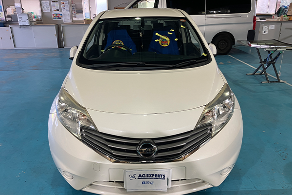AGエキスパート藤沢店にてノ-ト(日産)のフロントガラス交換を実施しました。飛び石キズのリペアやガラス交換をご検討中の方はぜひ参考にご覧ください。