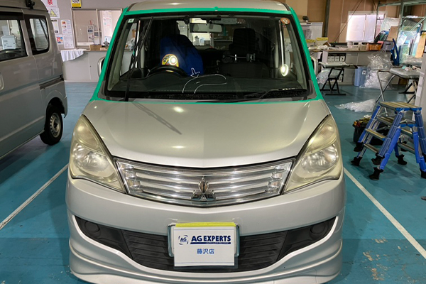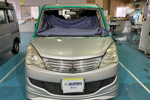 AGエキスパート藤沢店にてソリオ(スズキ)のフロントガラス交換を実施しました。飛び石キズのリペアやガラス交換をご検討中の方はぜひ参考にご覧ください。