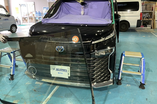 AGエキスパート藤沢店にてヴォクシー(トヨタ)のフロントガラス交換を実施しました。飛び石キズのリペアやガラス交換をご検討中の方はぜひ参考にご覧ください。